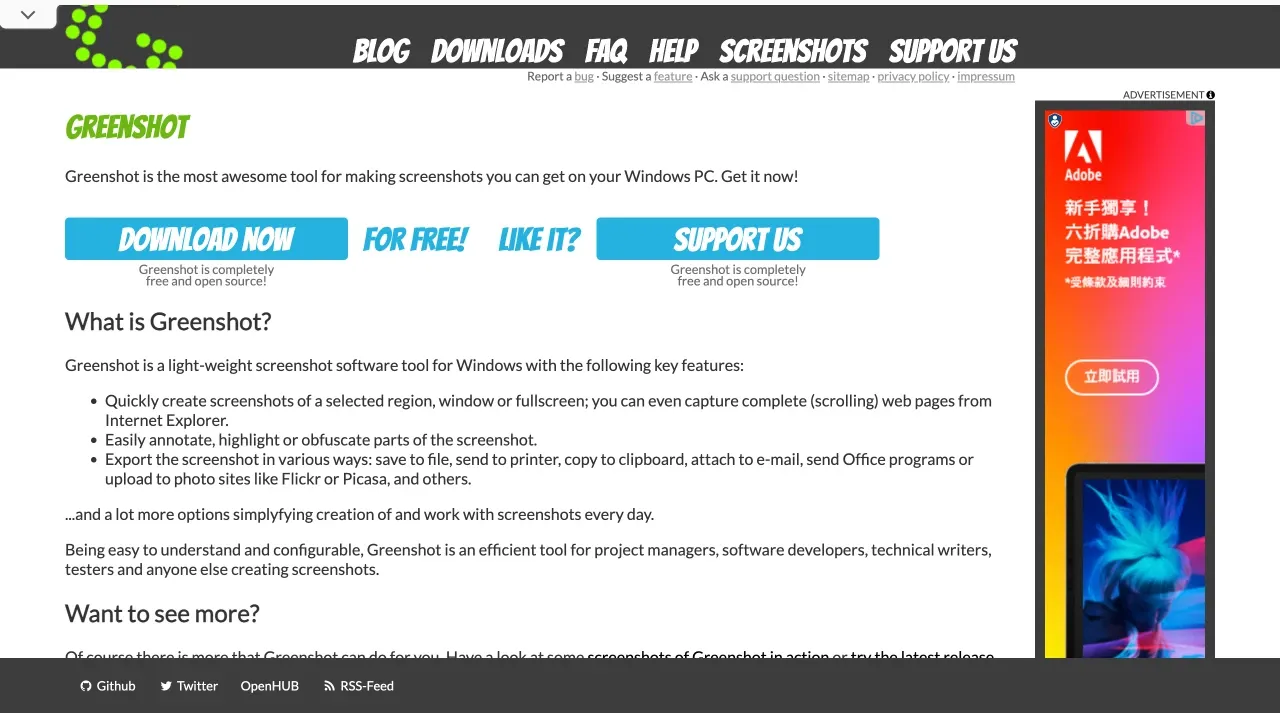 Greenshot 是一个非常轻便的 Windows 萤幕截图工具,拥有添加注释、滚动截图等功能。它是一款开源软件、新手友善、功能简单且界面干净,如果你只想找一个拥有基础功能、不要太花俏的截图工具,Greenshot 就非常适合你!